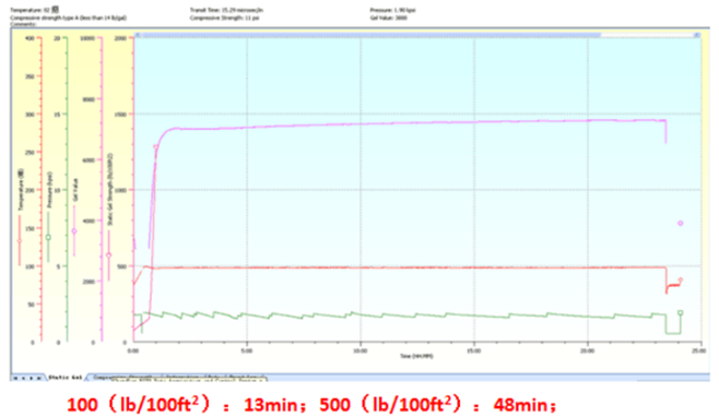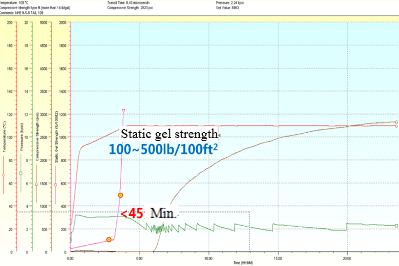 I. HTHP cement slurry system. Series of HTHP cementing additives have been developed which can withstand up to 500℉ of BHST and 23.37ppg of slurry density. It is very stable under high temperature with promising API fluid loss, short transition time, and low porosity of set cement.
