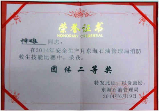 南海七号荣获东海石油管理局安全生产月活动比赛二等奖