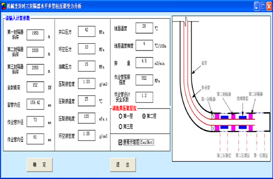 The fracturing technology of separate layers by packers is applicable to the vertical wells and directional wells, with well temperature of ≤100℃, and construction pressure of ≤70MPa.