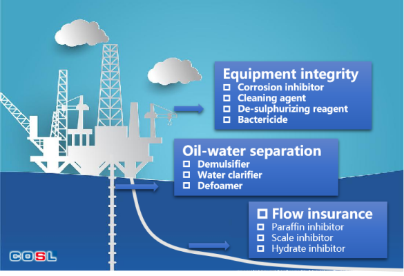 Anti Emulsification and corrosion inhibitors have been put into use in multiple oil fields in the eastern South China Sea.