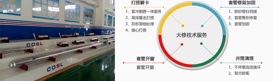 将套、冲、割、捞等技术进行优化组合,形成多种可控性强、安全风险低、作业效率高的不同复合工艺技术,完善了一体化打捞的作业服务能力。